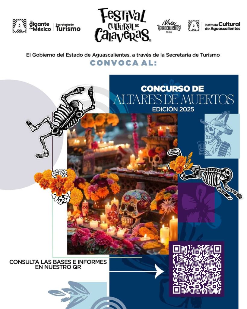 El Gobierno del Estado de Aguascalientes, a través de la Secretaría de Turismo, te invita a participar en el Concurso de Altares de Muertos, edición 2025, dentro del Festival Cultural de Calaveras.